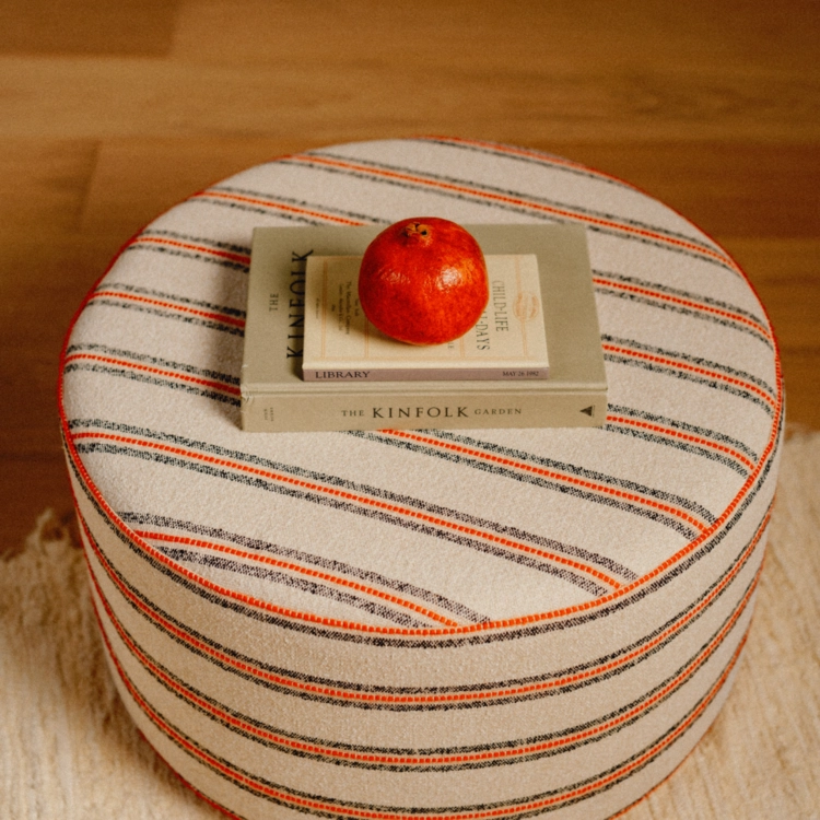 심플한 형태에 빨간색 스티치가 포인트인 패브릭이 더해진 스툴입니다. 넉넉한 크기와 편안한 쿠션감으로 오랜 시간 편안하게 머무를 수 있으며, 소파 옆 혹은 다양한 휴식 공간에서 유용하게 사용 가능합니다.