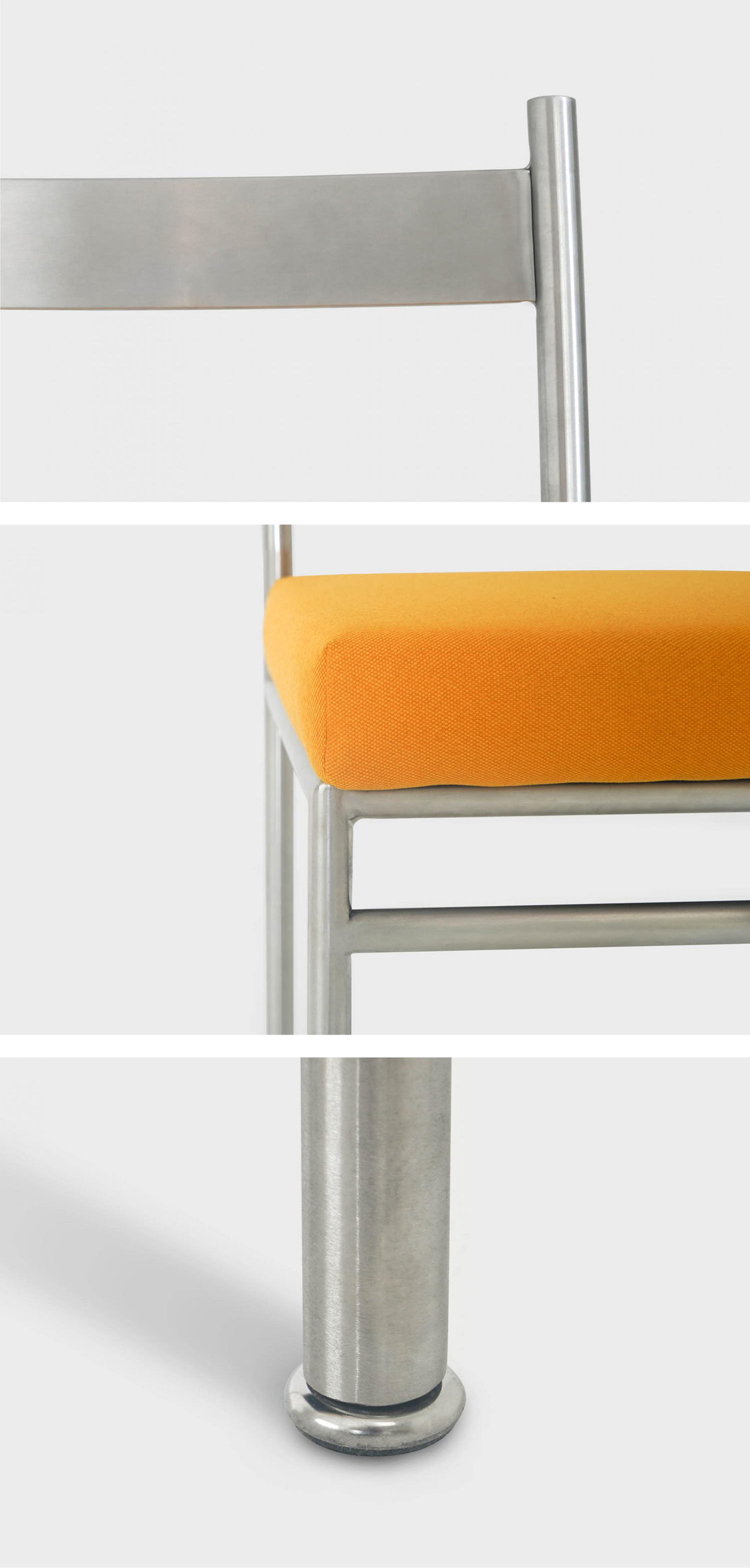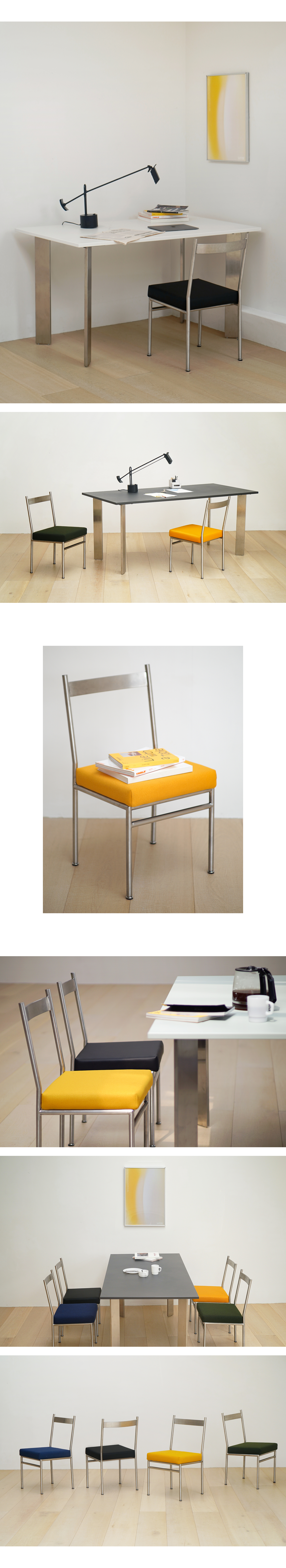 컬러감이 포인트가 되는 미니멀한 디자인의 의자입니다. 빈티지 질감의 스테인리스 스틸을 사용해 오랜기간 사용해도 변하지 않으며, 무게가 가벼워 이동이 편리합니다.