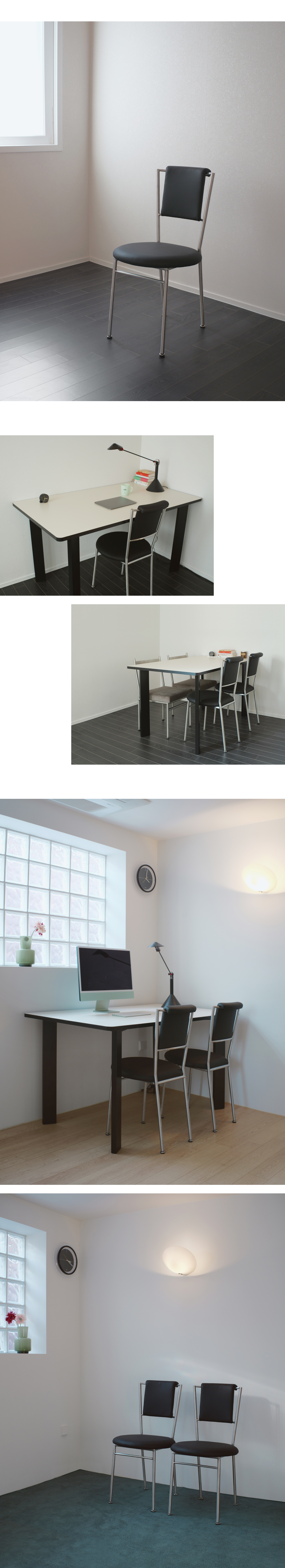 기존의 스테인리스 골조를 유지하면서도 부드러운 곡선이 더해진 실루엣의 체어입니다.