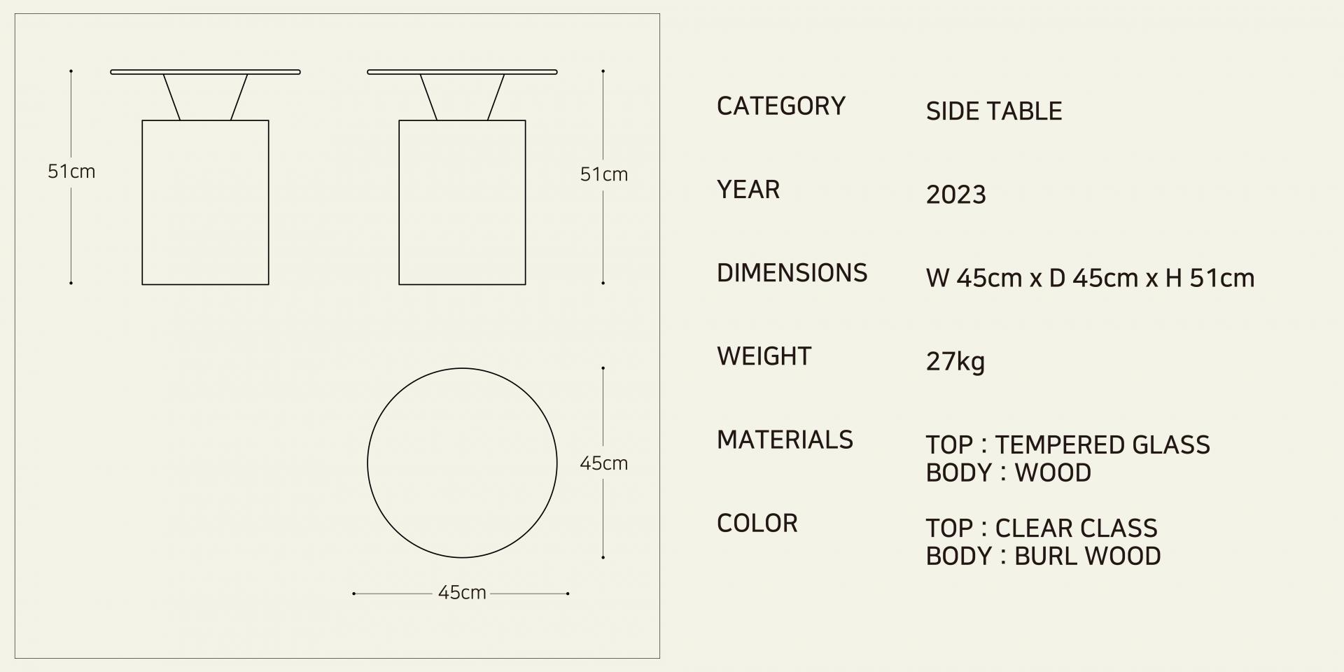 심플하면서도 심미적인 형태와 비율이 돋보이는 사이드 테이블입니다.