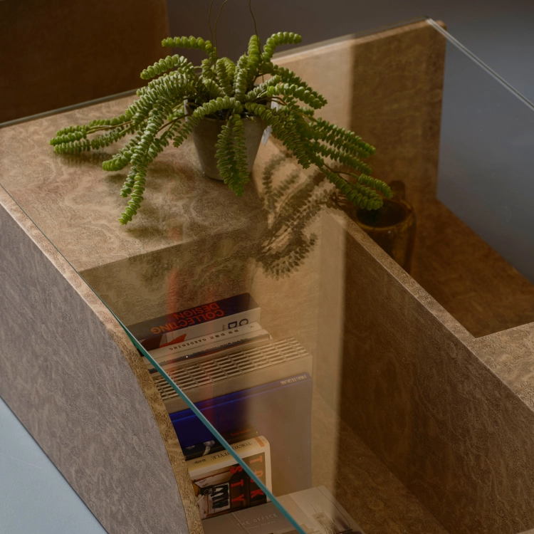 다양한 방식의 디스플레이와 수납을 할 수 있는 소파 테이블로 재미있는 형태와 기능을 갖고 있습니다.