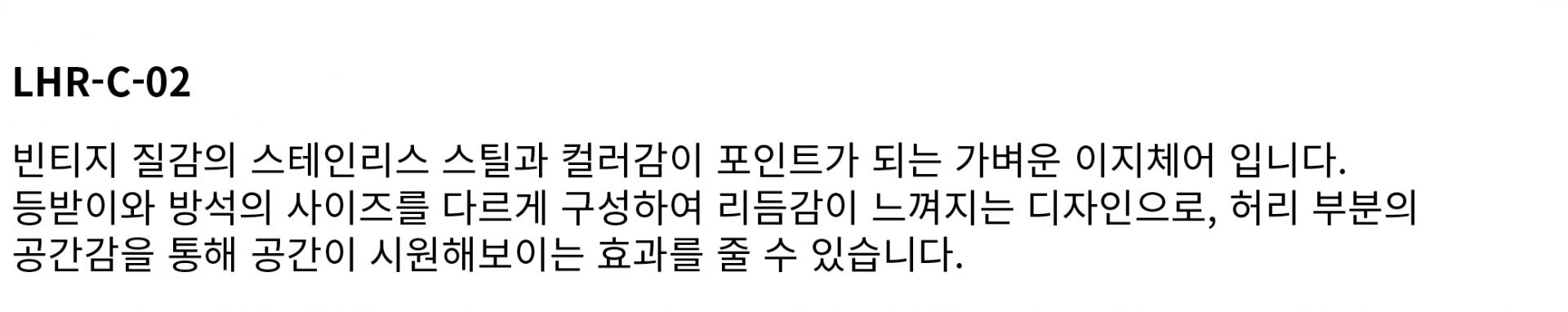 빈티지한 질감의 스테인리스 스틸과 컬러감이 포인트가 되는 가벼운 이지체어입니다.