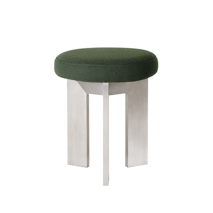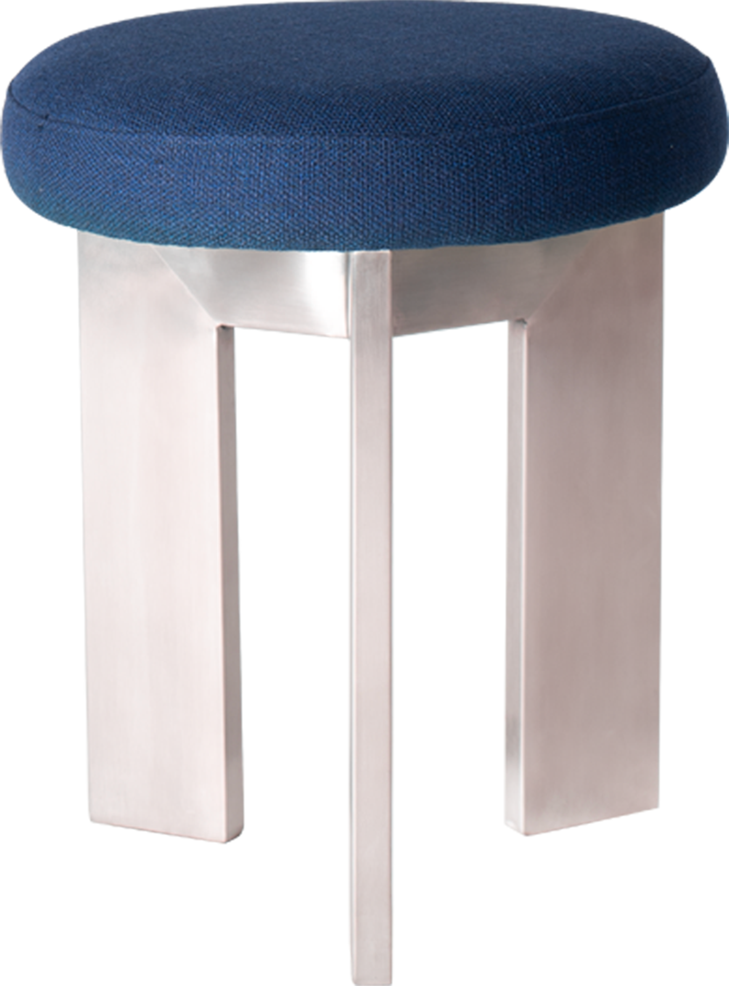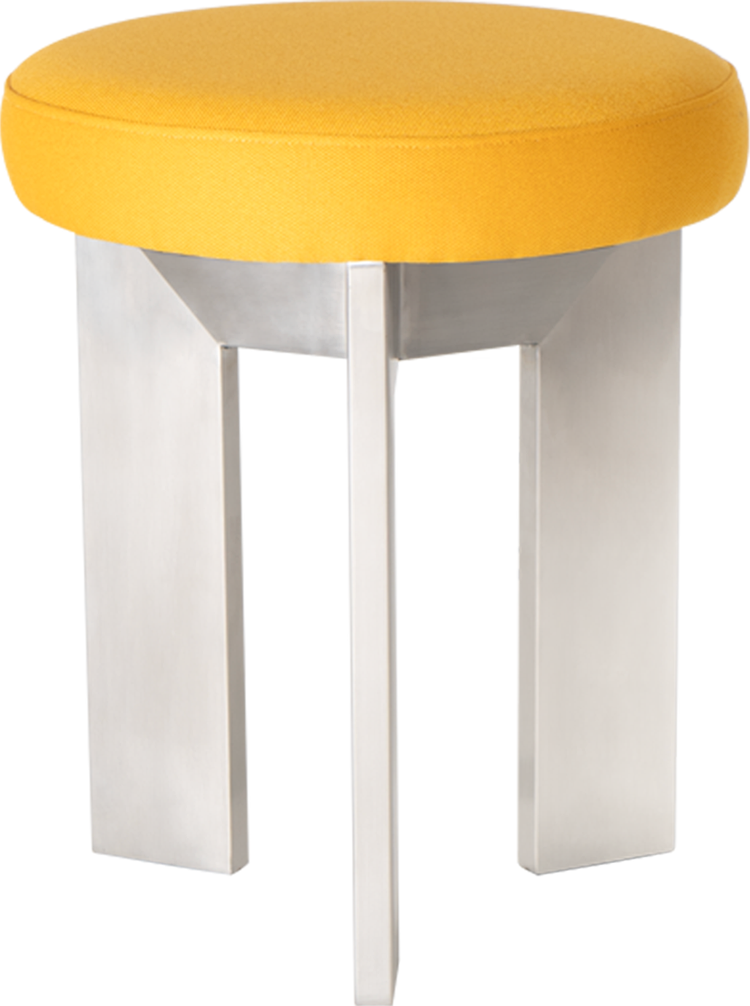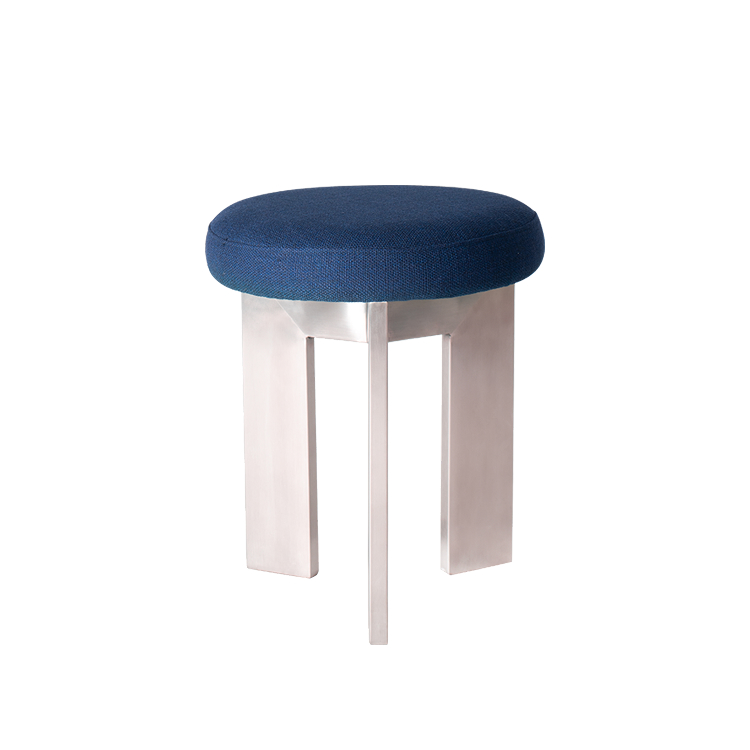 스툴 다리를 3개로 구성한 미니멀한 디자인의 스툴입니다. 약간 틀어진 다리의 각도와 두툼한 방석 쿠션 컬러는 공간에 포인트를 더하기 좋습니다.