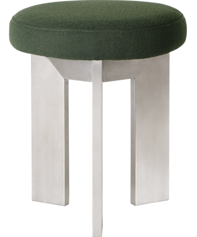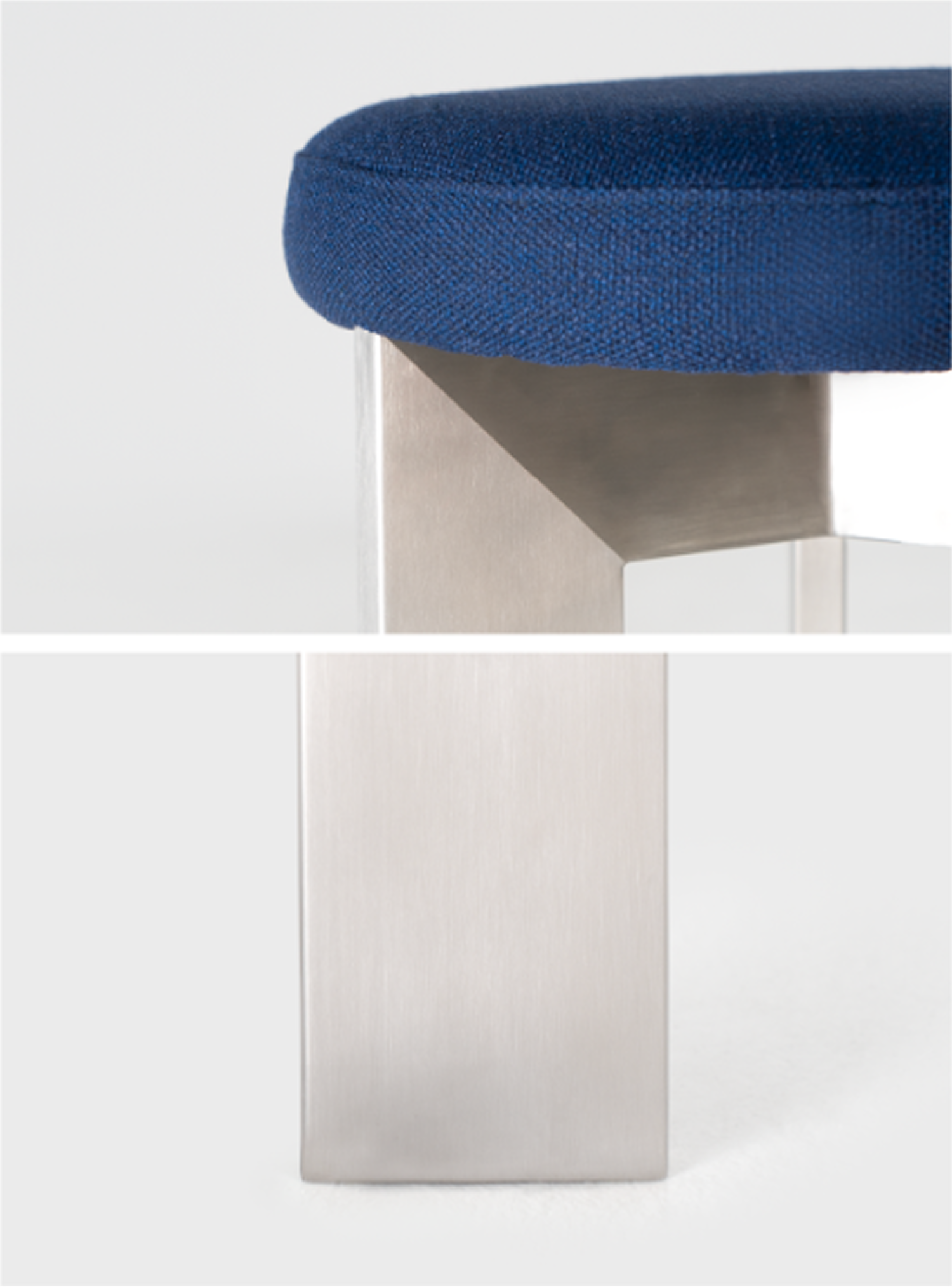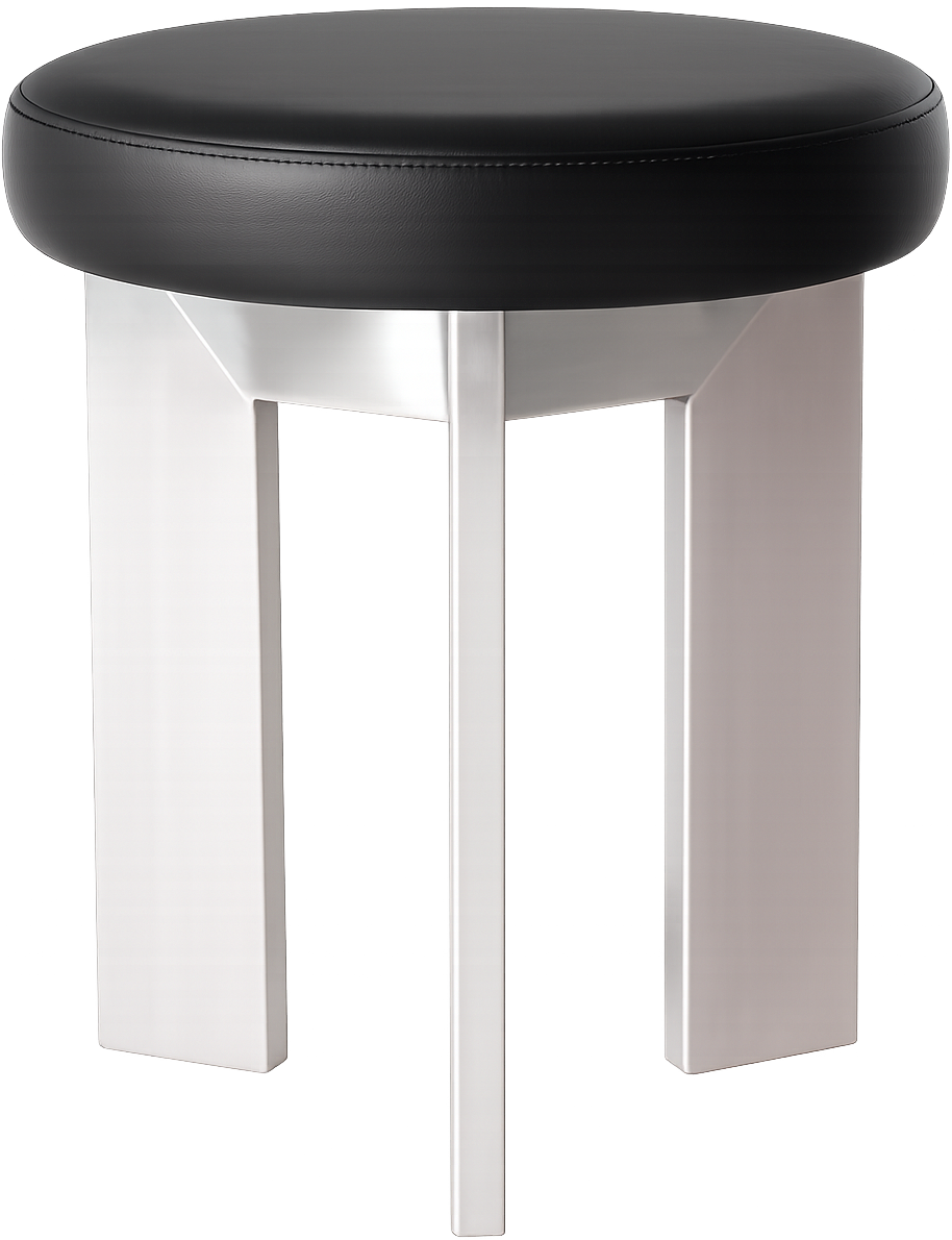 스툴 다리를 3개로 구성한 미니멀한 디자인의 스툴입니다. 약간 틀어진 다리의 각도와 두툼한 방석 쿠션 컬러는 공간에 포인트를 더하기 좋습니다.
